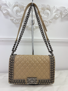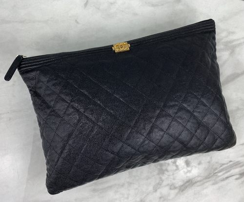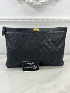 CHANEL WOC BOY V STITCH LAMBSKIN METALLIC GREY WITH GUNMETAL HARDWARE
