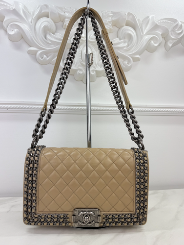 CHANEL BOY LARGE FLAP LAMBSKIN BLUE & BLACK